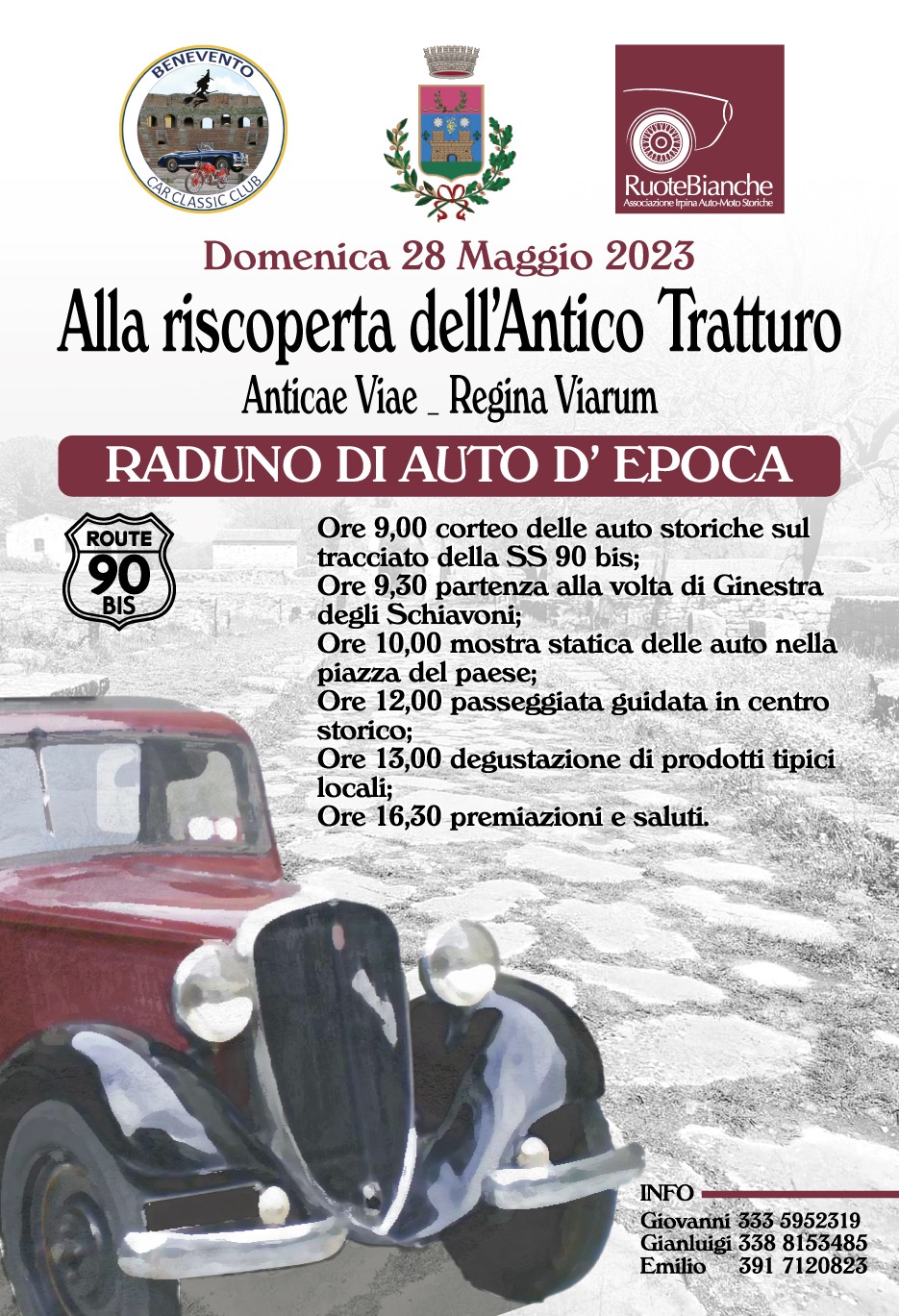 Il prossimo 28 maggio si terra’ una manifestazione in gemellaggio con il Car Classic Club di Benevento che vedra’ coinvolte decine di auto storiche in partenza da Benevento alla volta del comune di Ginestra degli Schiavoni (BN).